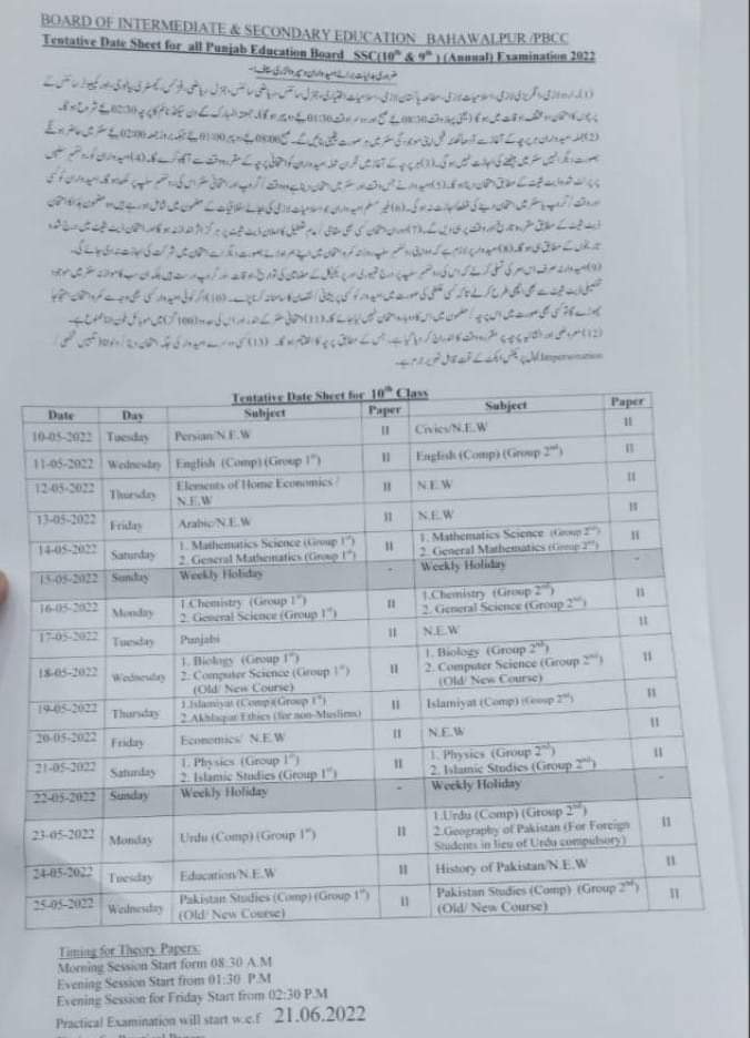 What Is The Date Sheet Of 10th Class 2021 - Coverboo…
