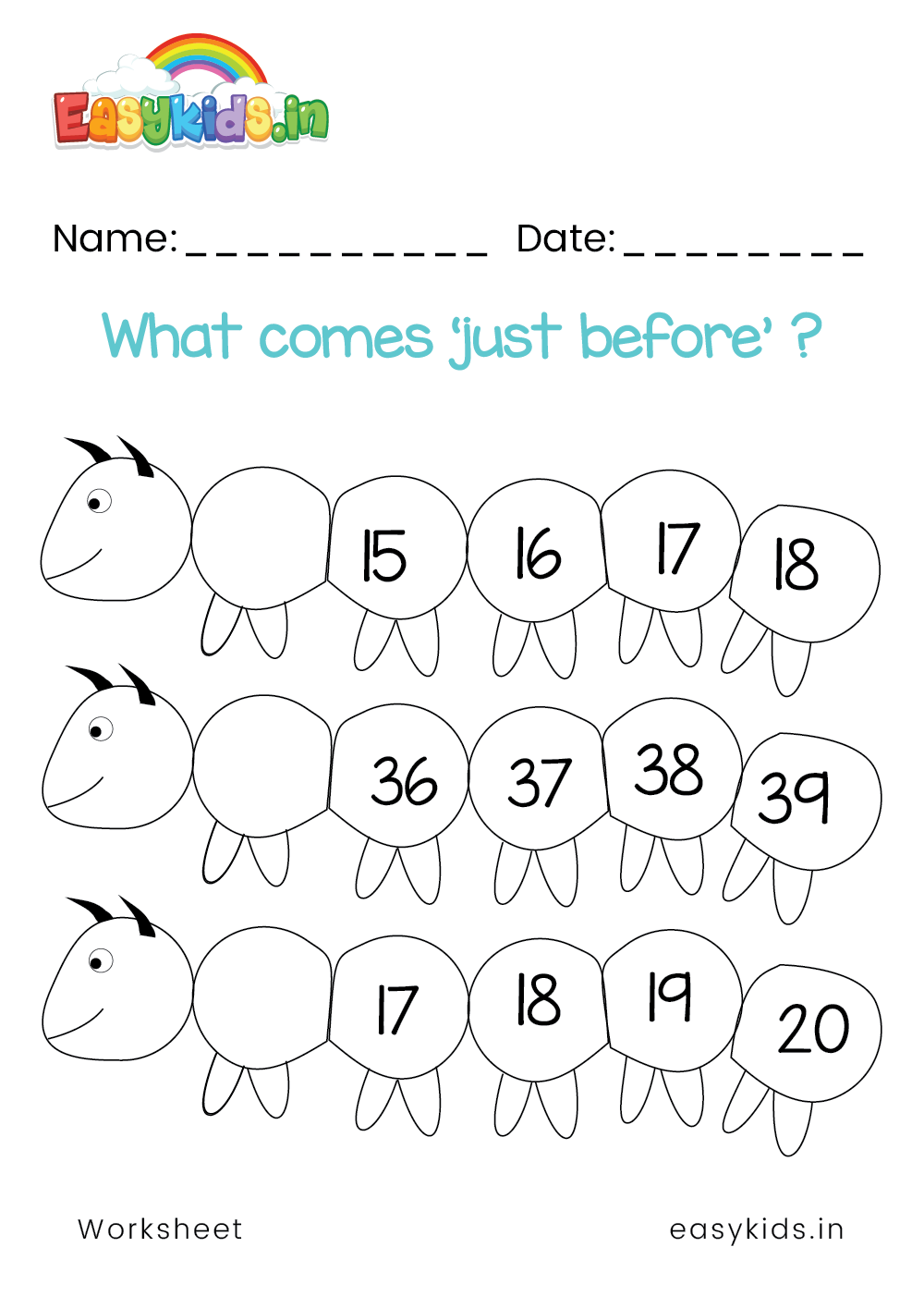 What comes before - Worksheet 3